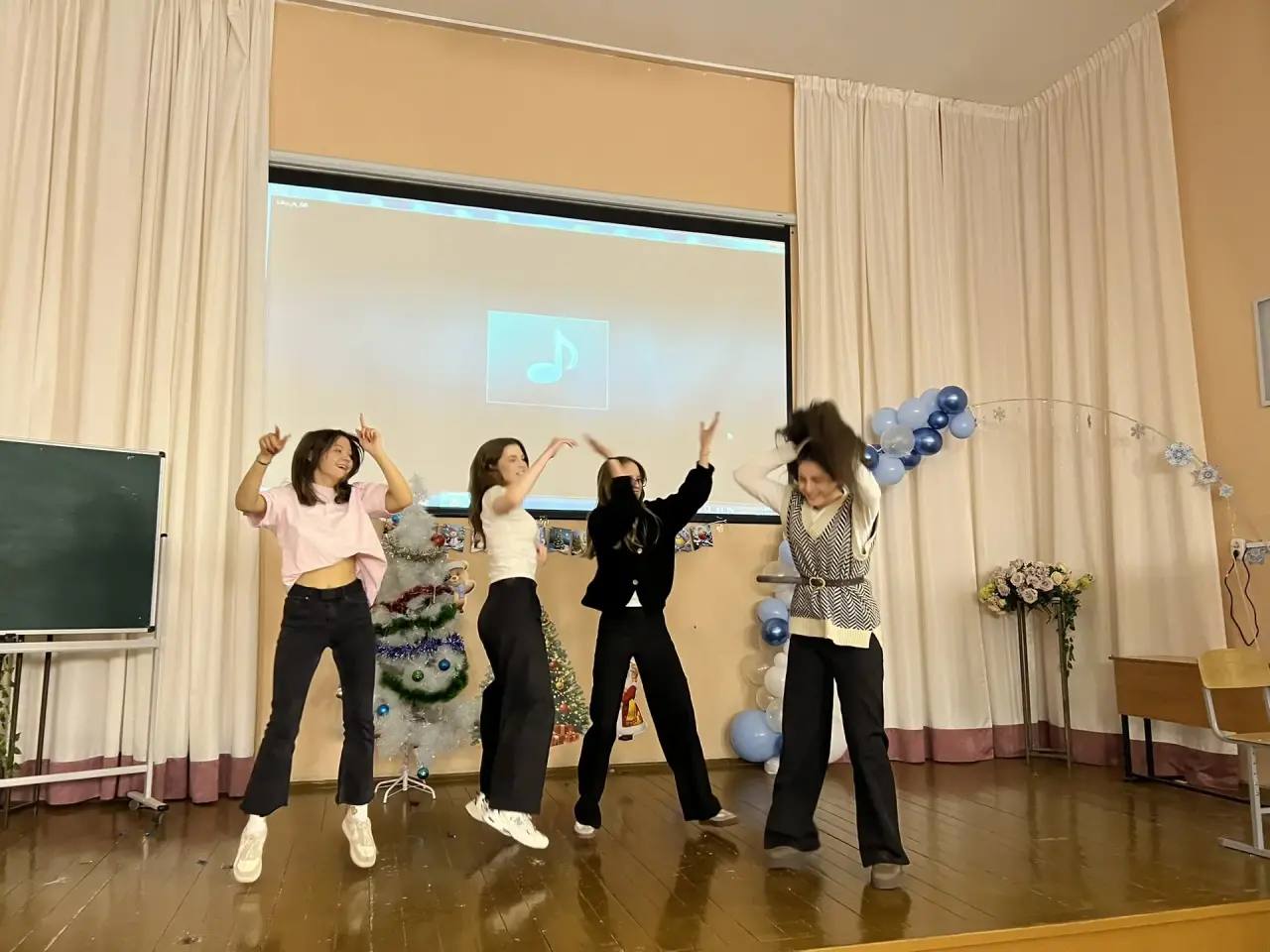 Завершился праздник дискотекой с новогодними мелодиями. Все ученики получили множество положительных эмоций и заряд бодрости на предстоящий учебный год.